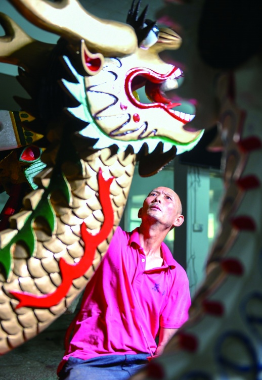 6月3日,道县非物质文化遗产保护中心,陈兵寿在给龙船头裱漆。当天,龙船头制作传承人陈兵寿忙着赶制龙船的“龙头”,迎接端午节的到来。2020年12月,道州龙船习俗已列入第五批国家级非物质文化遗产公示名录。蒋克青 王建文 摄