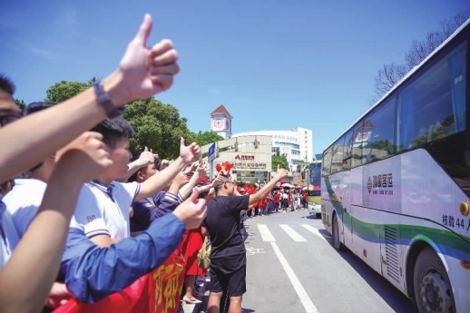 6月6日下午,在长沙同升湖实验学校罗马广场上,上千人共同为高三学子加油打气,送考队伍绵延一公里多长,1175名高三考生充满信心奔向高考“战场”。