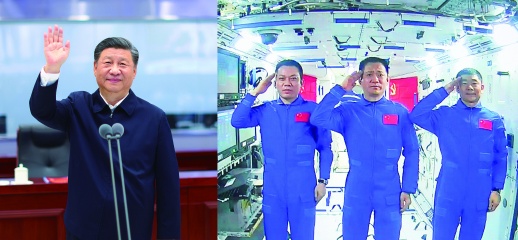 中共中央总书记、国家主席、中央军委主席习近平6月23日上午来到北京航天飞行控制中心,同正在天和核心舱执行任务的神舟十二号航天员聂海胜、刘伯明、汤洪波亲切通话,代表党中央、国务院和中央军委,代表全国各族人民,向他们表示诚挚问候。
