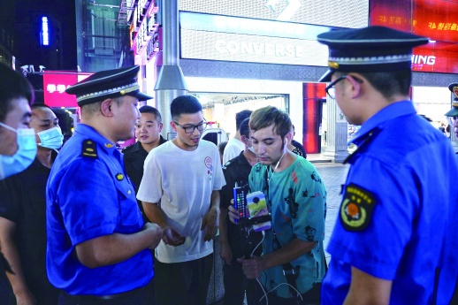 9月1日当晚,三湘都市报记者跟随工作人员在黄兴南路步行街巡逻两圈之后发现,相较于上周直播人员在街头扎堆聚众的情景,如今的黄兴南路步行街已难觅大声喧哗、粗俗表演等低俗直播行为,只有三四名直播人员站在路边安静唱歌或与直播间观众聊天互动。