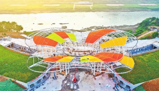 9月6日,浏阳市,即将竣工的花炮观礼台在阳光下初露芳容。4月10日,浏发集团启动花炮观礼台提质改造施工,这是花炮观礼台建成18年以来的首次大提质。目前已完成总进度的93%,预计9月底竣工。改造后的观礼台不仅仅是浏阳的一张新名片,还将成为日常休闲、观光旅游的打卡点。