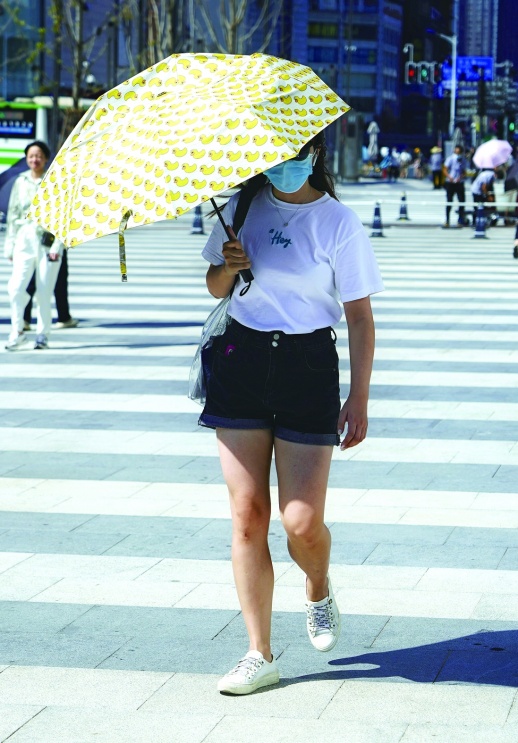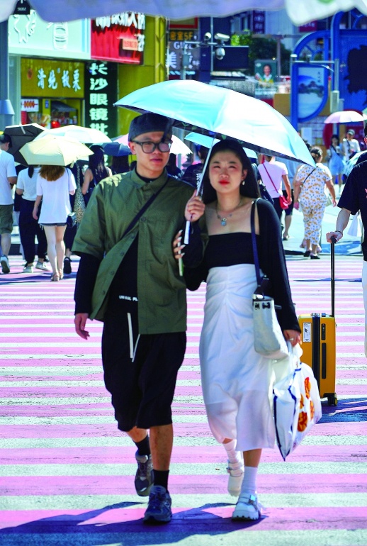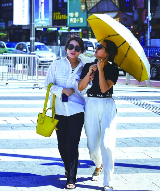 9月22日下午,长沙五一商圈,37℃的高温下,人们依旧是墨镜太阳伞防晒套装出行。9月23日3时21分,将迎来“秋分”节气。“秋分”一到,标志着我国绝大部分地区正式进入凉爽的秋季,不过,在湖南“秋老虎”今后一段时间将继续发威,预计27日前省内以晴热高温天气为主,最高气温可达38℃。■记者 李成辉 顾荣 摄影报道