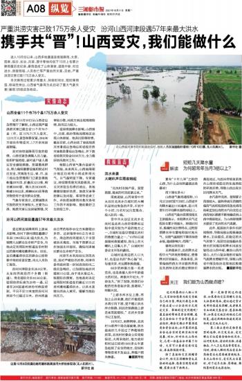 进入10月份以来,山西多地遭遇连续强降雨,太原、阳泉、临汾、长治、吕梁、晋中等地均创下10月上旬累计降雨量历史纪录。暴雨造成了山体滑坡、道路中断、村庄进水、房屋倒塌、人员伤亡等严重自然灾害。目前,严重洪涝灾害已致175万余人受灾。