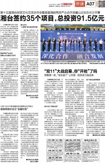 三湘都市报10月21日讯 10月21日,第十五届湘台经贸文化交流合作会暨首届海峡两岸产业合作岳麓山论坛(简称“一会一论坛”)在长沙开幕。