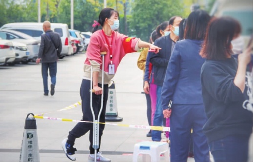 “面对疫情大考,必须做到全员到岗。”易露告诉记者,社区已组织过几次大型核酸检测,而她对现场秩序把控和信息登记步骤较清楚,因此她虽有脚伤,但仍不下火线。
