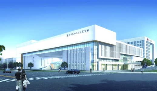 10月27日,长沙市总工会4个工人文化宫项目建设集中开工,总投资12亿元,将通过原址新建、维修改造、异地新建等形式对4个文化宫进行提质改造,拟建设成为全省一流的职工服务与文体活动综合中心。图为4个工人文化宫建成之后的效果图。