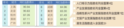 据了解,此次网红城市百强榜,从网络热度、城市活力、潮生活、产业发展、印象评分5个维度,设置了13个二级指标、39个三级指标,其结果为研究城市影响力塑造和产业布局提供全方位的视角。