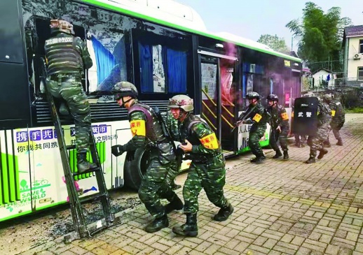 数名“暴恐分子”劫持了1辆公交车,车内有数名乘客,情绪非常激动,……11月1日,武警湖南总队湘北片区以公交车反劫持为背景,组织特战队员们开展了一场反恐实兵演练。