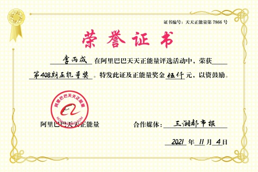11月4日,三湘都市报联合阿里巴巴天天正能量授予湘潭“托举哥”李雨成“天天正能量特别奖”及5000元正能量奖金。