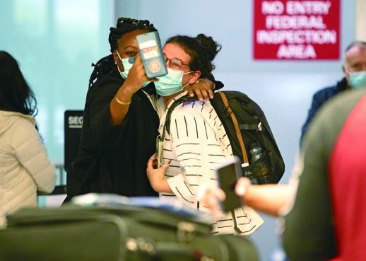 爱人亲吻、祖孙相拥……随着美国政府8日放宽入境限制,多地机场和水陆口岸上演一幕幕被新冠疫情阻隔的亲人久别重逢的感人场景。