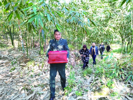 按照相关程序和地方风俗,柳南区和安化县退役军人事务部门做完迁墓相关交接工作后,安化县平口镇人民政府武装部副部长陈智勇手捧覆盖国旗的英烈骨灰盒从竹林深处慢慢走出来,陈碧秋紧随其后。考虑到“父亲”是为人民的利益牺牲在广西柳州这片土地,英雄属于国家属于人民,陈碧秋决定把“父亲”的墓碑留在柳州。