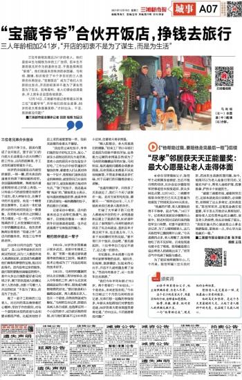 40余年邻里情如父子,陈恺军主动照顾身患癌症、生活不能自理的邻居。长沙县安沙镇陈恺军的事迹经本报报道后,获众多网友点赞。12月14日,三湘都市报联合阿里巴巴天天正能量为他颁发了特别奖及5000元奖金。