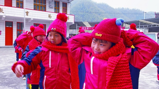 孩子们集中在操场上,志愿者将200套“温暖包”发放到孩子们手中,并给孩子们戴上亲手编织的帽子、围巾和手套,幸福的微笑洋溢在孩子们脸上。“太暖和了,我感觉戴一会就能出汗了。”几名调皮的小男孩说道,他们还互相询问对方是否暖和。得知这些围巾是爱心人士一针一线编织的,孩子们更是惊叹地称赞道,“看这些围巾多好看,比买的成品围巾还要好,有爱心的叔叔阿姨、爷爷奶奶们太厉害了。”