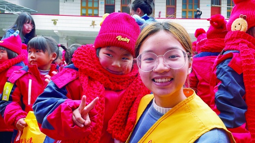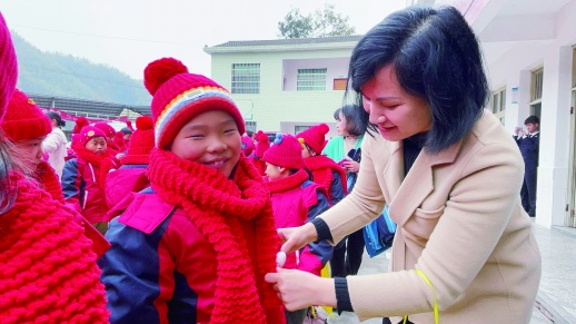 12月15日,三湘都市报联合阿里巴巴天天正能量开展的2021年度“针心针意”暖冬公益行动走进益阳安化县仙溪镇大溪村大溪完小,为全校200名乡村儿童送上校服、围巾、帽子、手套全套“温暖包”。三湘都市报全媒体记者 杨洁规 摄