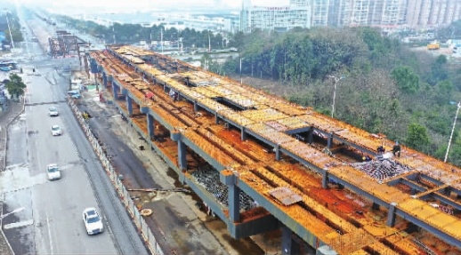 2月13日,中建五局长沙地铁1号线北延一期工程1-2区间,施工人员对金霞站进行二次结构施工。该区间长度约4.91km,两座车站(金霞站、金盆丘站)已完成主体结构封顶。