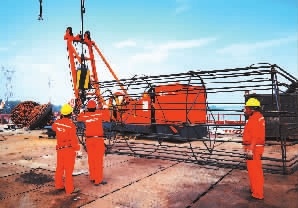 湘江香炉洲大桥桩基有532根,目前已完成300多根。“我们班组主要负责水下桩基和围堰开槽,20号墩、21号墩、22号墩都已提前完成桩基施工任务。”张明健是劳模,荣获过湖南省五一劳动奖章。在他身后的工地,“劳模先锋班组”标牌格外醒目。