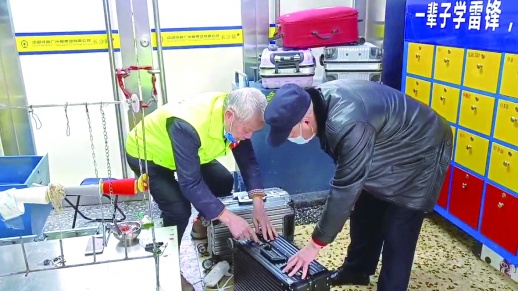 “这个行李箱还是得修好,不然用着不方便。”刘镜辉戴着老花镜,蹲在地上,手拿打磨机仔细打磨着行李箱新的滚轮。和以前的流动小摊不同,刘镜辉现在服务旅客的大本营升级为“星火雷锋服务点”。