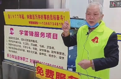 “76岁不算老,这些好事我还是做得动的。”在长沙火车站工作了大半辈子的刘镜辉,退休后依旧坚守,为往来旅客提供力所能及的帮助。早在1977年,乐于助人的刘镜辉就立下目标,“学雷锋,做好事。做得动就要一直做下去。”45年过去了,他依然坚守初心。如今,刘镜辉早已成为远近闻名的“活雷锋”,仍默默守候在自己的爱心小摊前,不同的是移动小摊已经升级,有了新门头,成为“星火雷锋服务点”。