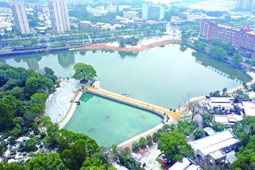 2月23日,长沙市芙蓉区红旗水库生态公园水清岸绿,环境优美。这里曾是小水库,因常年接纳邻近片区的生活污水,成为污水池。2021年3月开始,红旗水库清淤工程和景观提质工程先后实施,绿化面积逾1万平方米,变成了一个生态型主题公园,成为周边居民休闲散步的好去处。