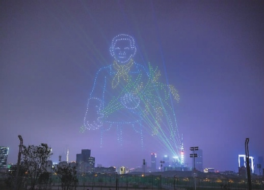 4月29日晚,长沙马栏山视频文创园鸭嘴公园,无人机在空中变换出袁隆平院士手捧稻穗的造型。当天,1000架无人机以“强省会 勇担当 劳动最光荣——致敬伟大的劳动者”为主题,上演精彩无人机表演秀,与市民喜迎“五一”。