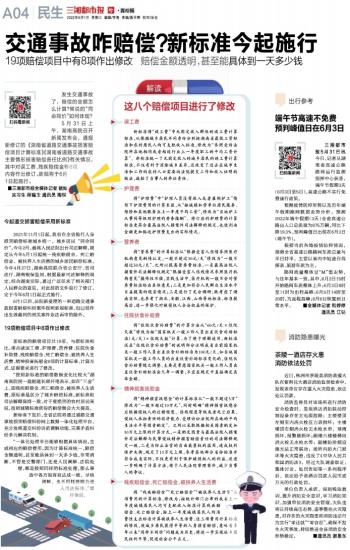 5月31日上午,湖南高院召开新闻发布会,通报新修订的《湖南省道路交通事故损害赔偿项目计算标准》《湖南省道路交通事故主要情形损害赔偿责任比例》有关情况,其中对误工费、残疾赔偿金等8项内容作出修订。新规将于6月1日起施行。