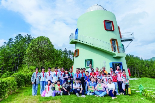 在这群孩子里,有一名10岁的谢天磊小朋友,因为读书了解了很多天文知识,并把对太空的热切向往和无限想象画成画。他的画里,星星有喜怒哀乐,火星长得像足球一样。在相关机构的牵线下,为满足小河乡“看星星的孩子们”对天文知识的好奇心和求知欲,拼多多联合捐赠了星河天文台,并带来了科普书籍。这是湖南省唯一一个建在乡村的准专业级别的天文台,而谢天磊小朋友也成为首任天文台小台长。平日里,他会带领山里的孩子们一起“仰望星空”,共同在探究宇宙的实践体验中学习天文知识。