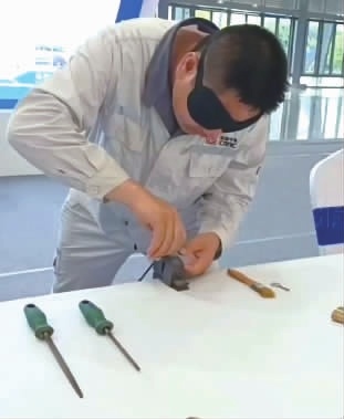 7月3日至6日,湖南省第一届职业技能大赛在株洲举行,来自全省14个市州、21个行业部门的35支参赛代表团、1087名职业技能高手齐聚一起,同台献技。技能比武,风采匠人,我们看到了他们发光发亮的模样。左图:参赛选手在进行碳钢板板仰焊技能演示。右图:参赛选手展示蒙眼配钥匙。
