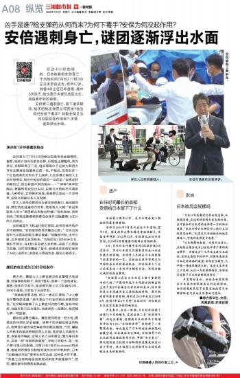 “日本10号就要进行参议院选举,从短期来看,在选举的前两天发生枪击案,这可能会对自民党的选举有一定的加分效果。”武汉大学日本研究中心执行主任林泉忠分析,“尤其是与安倍相关的地区候选人,可能将获得更多选票。”