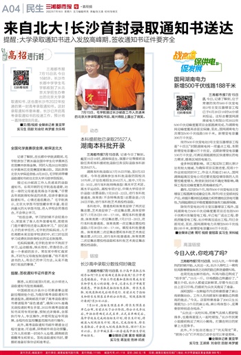 据悉,从即日起至8月底,长沙将进入录取通知书发放高峰期。