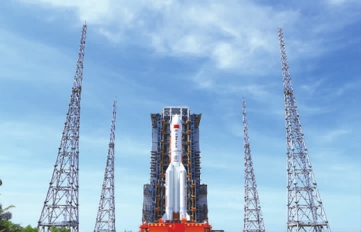 7月18日,问天实验舱与长征五号B遥三运载火箭组合体转运至发射塔架。当日,问天实验舱与长征五号B遥三运载火箭组合体转运至发射区,将于近日择机实施发射。 新华社 图