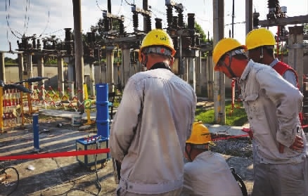 国网永州供电公司积极应对高温晴热天气,多措并举开展迎峰度夏保供电工作。提前成立“迎峰度夏”工作领导小组,建立六个工作专班,合理安排电网运行方式,强化电气设备特巡、测温工作,对变电站设备开展全方位巡视,确保电力设施安全稳定运行。图为7月18日,国网永州供电公司员工在35千伏福田变电站对站用变压器4X18电缆头进行发热消缺工作。