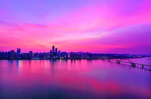 8月17日傍晚,一场阵雨过后,长沙市城区天空出现漫天红霞的壮丽景观,湘江与城市建筑水天一色,美翻了。当天,长沙开展4轮次增雨作业,望城区、岳麓区、开福区、浏阳市降阵雨,局地中等阵雨。图/湖南日报全媒体记者 郭立亮