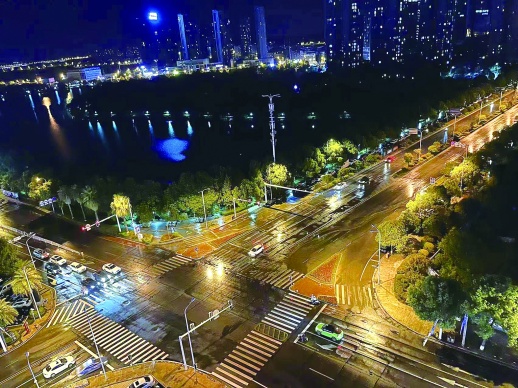 8月25日晚,长沙市望城区斑马湖,雨水的洗涤让空气变得清爽。长沙市气象台8月25日发布雷电黄色警报与暴雨黄色预警,当天晚间9点左右,星城多区县盼来了降雨,在经历过一周红色高温预警后,长沙终于迎来了一场正式降雨。