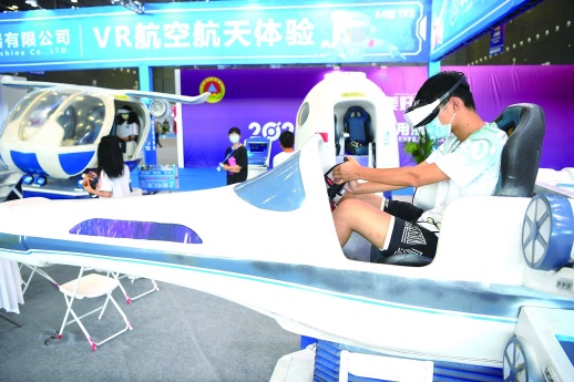 VR滑翔伞模拟器、直升机模拟飞行体验、无人机足球……9月1日上午,2022湖南(国际)通用航空产业博览会现场,丰富多彩妙趣横生的沉浸式体验游戏吸引了不少人打卡、拍照。
