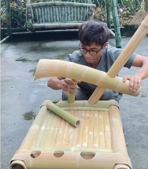 除了开发新产品,戴小竹还在材料上做文章,成功“化弯竹为神奇”。今年5月,他在山里看到许多被废弃的弯竹,又有了新想法,“天生我竹必有用,别人说没用的,我偏偏要它出彩。”凭着一股子执拗的劲头,戴小竹让原本不起眼的“丑竹”,实现了华丽变身。将弯竹的弧度与太师椅的稳重完美融合,更受年轻人喜爱。戴小竹笑着说,“这是我目前最满意的作品,没有之一。”