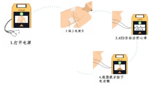 AED是体外自动除颤器的简称,是一种带计算机的医疗设备,可以评估患者的心律,并在检测到应进行电击的节律时间向心脏传输电击的一种仪器。
