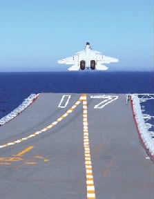 仅两个月后,11月23日,舰载机试飞员戴明盟驾驶歼-15飞机成功阻拦着舰,人民海军实现了舰载战斗机上舰的历史性突破。
