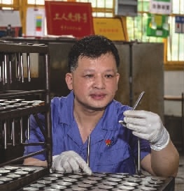 据了解,镀铬有10道工序,配比最关键也最危险。甘军华凭借多年经验练就一手绝活,硬是将每道工序弄得滚瓜烂熟,练就了一双如同X光一样的“火眼”和“神手”,仅凭肉眼观察和手感触摸就能判断生产是否正常、质量是否稳定,被同事称为“镀铬状元”。