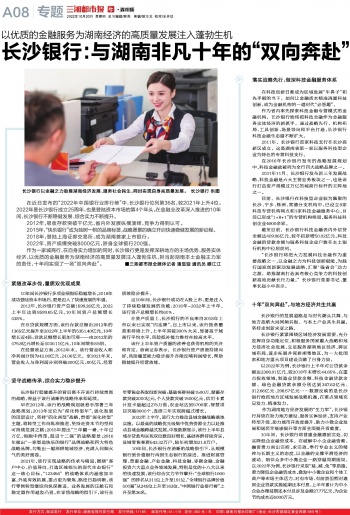 作为一家城商行,在自身实力增加的同时,长沙银行更是发挥深耕地方的主场优势,服务实体经济,以优质的金融服务为湖南经济的高质量发展注入蓬勃生机,担当起湖南本土金融主力军的责任,十年间实现了一场“双向奔赴”。 ■三湘都市报全媒体记者 潘显璇 通讯员 滕江江