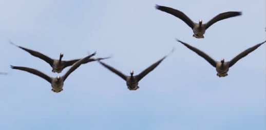 据曹钧介绍,白额雁迁徙主要在晚上进行,白天停息下来觅食和休息。白额雁为“一夫一妻制”,以家族形式活动,通常是以“大部队”“小单位”的形式迁徙。