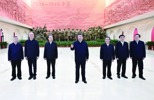 党的二十大闭幕不到一周,中共中央总书记、国家主席、中央军委主席习近平带领中共中央政治局常委李强、赵乐际、王沪宁、蔡奇、丁薛祥、李希,专程从北京前往陕西延安,瞻仰延安革命纪念地,重温革命战争时期党中央在延安的峥嵘岁月,缅怀老一辈革命家的丰功伟绩,宣示新一届中央领导集体赓续红色血脉、传承奋斗精神,在新的赶考之路上向历史和人民交出新的优异答卷的坚定信念。