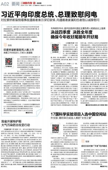 10月31日,国家主席习近平就印度古吉拉特邦拉索桥断裂倒塌事故,造成重大人员伤亡向印度总统穆尔穆、总理莫迪致慰问电。