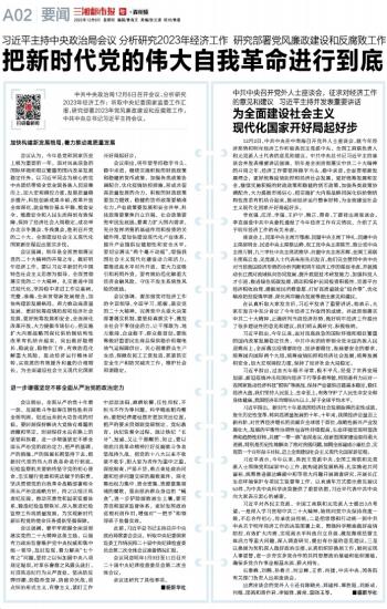 会议强调,要牢牢把握全面贯彻落实党的二十大精神这条主线,以强有力政治监督维护党中央权威和集中统一领导,及时发现、着力解决“七个有之”问题。要持之以恒加固中央八项规定堤坝,对享乐奢靡之风露头就打,对顶风违纪行为从严查处,坚决防反弹回潮、防隐形变异、防疲劳厌战,重点纠治形式主义、官僚主义,紧盯工作中层层加码、麻痹松懈、任性用权、不担当不作为等问题,科学精准靶向整治。要把纪律建设摆在更加突出位置,把严的要求贯彻到党规制定、党纪教育、执纪监督全过程,既让铁纪“长牙”、发威,又让干部醒悟、知止。要以彻底自我革命精神打好反腐败斗争攻坚战持久战,把党的十八大以来不收敛不收手、胆大妄为者作为重中之重,深挖细查、严惩不贷,重点查处政治问题和经济问题交织的腐败案件,深化整治权力集中、资金密集、资源富集领域的腐败,坚决惩治群众身边的“蝇贪”,进一步铲除腐败滋生土壤。要完善党和国家监督体系,更好发挥政治巡视利剑作用,增强对“一把手”和领导班子监督实效。