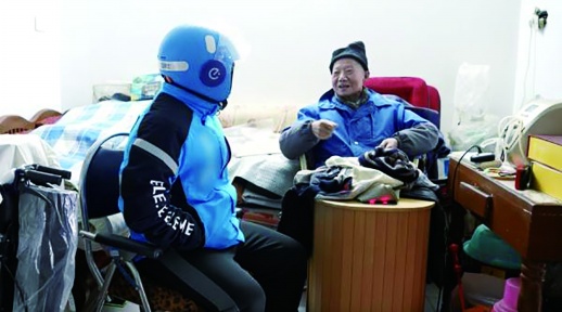 “小袁,你来了呀!”听到熟悉的吆喝声,86岁的胡爷爷从扶手椅上起身,步履蹒跚地走到门口,接过午饭后顺道给袁可交代了一个“小任务”,“我在外面捡了点废品,你平时在路上跑得多,麻烦你帮忙看看有没有上门收废品的人。另外,你最近也要注意身体,小心生病。”
