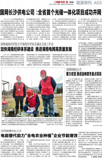 随着气温持续“跳水”,冬季用电高峰日益临近。株洲供电公司加速重点电网项目建设,增强线路巡查和改造,提升线路抗冰冻能力,加强电网供电可靠性及稳定性。该公司上下齐心,克服了疫情防控等挑战,完成了220千伏醴陵东、110千伏响塘等10几个项目投产,预计春节前还将投产攸县坪阳35千伏主变扩建、茶陵舲舫35千伏输变电等春节保供电重点项目,大大提升株洲电网的供电能力与可靠性。
