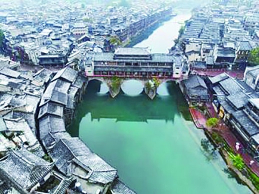 两岸的吊脚楼、跳岩、城墙、乌篷船均披上了一层薄薄冬装,白瓦红墙、飞檐斗拱相互交错辉映,在白雪的点缀之下,更加轮廓分明,错落有致。