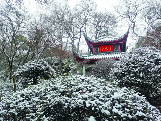 1月15日,被积雪覆盖的长沙市岳麓山风景名胜区爱晚亭。当天正值南方小年,受寒潮影响湖南多地气温急剧下降,长沙、张家界、湘西等地迎来2023年的第一场雪。