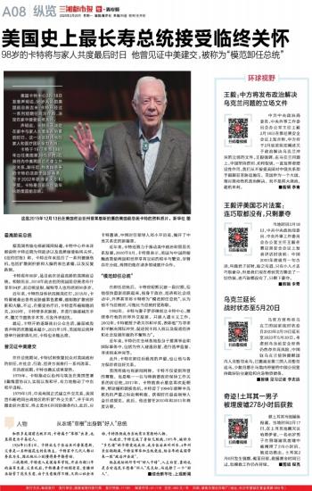 卡特现年98岁,是目前在世最高龄的美国前总统。相较而言,2018年底去世的美国前总统老布什享年94岁,前总统里根、福特等人也均活到90多岁。