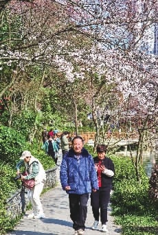 记者在现场,看到公园内樱花盛开,重重叠叠的花朵挂满枝头,争相吐艳,粉红色的花海沿着湖道一路盛开,一团团灿若云霞,游客漫游其中,流连忘返。据了解,本次活动推出大汉遗风、花情诗意、拈花望月三大系列七项活动,随着园内樱花渐次绽放,活动将持续到3月5日。