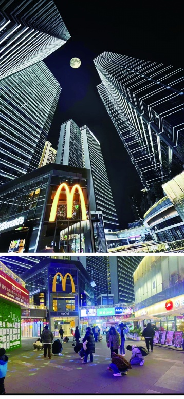 推荐两个出片的好机位:一楼麦当劳门口;旁边户外电梯上去转身正对身后餐厅,拍照时打开广角,或借用小梯子仰拍。